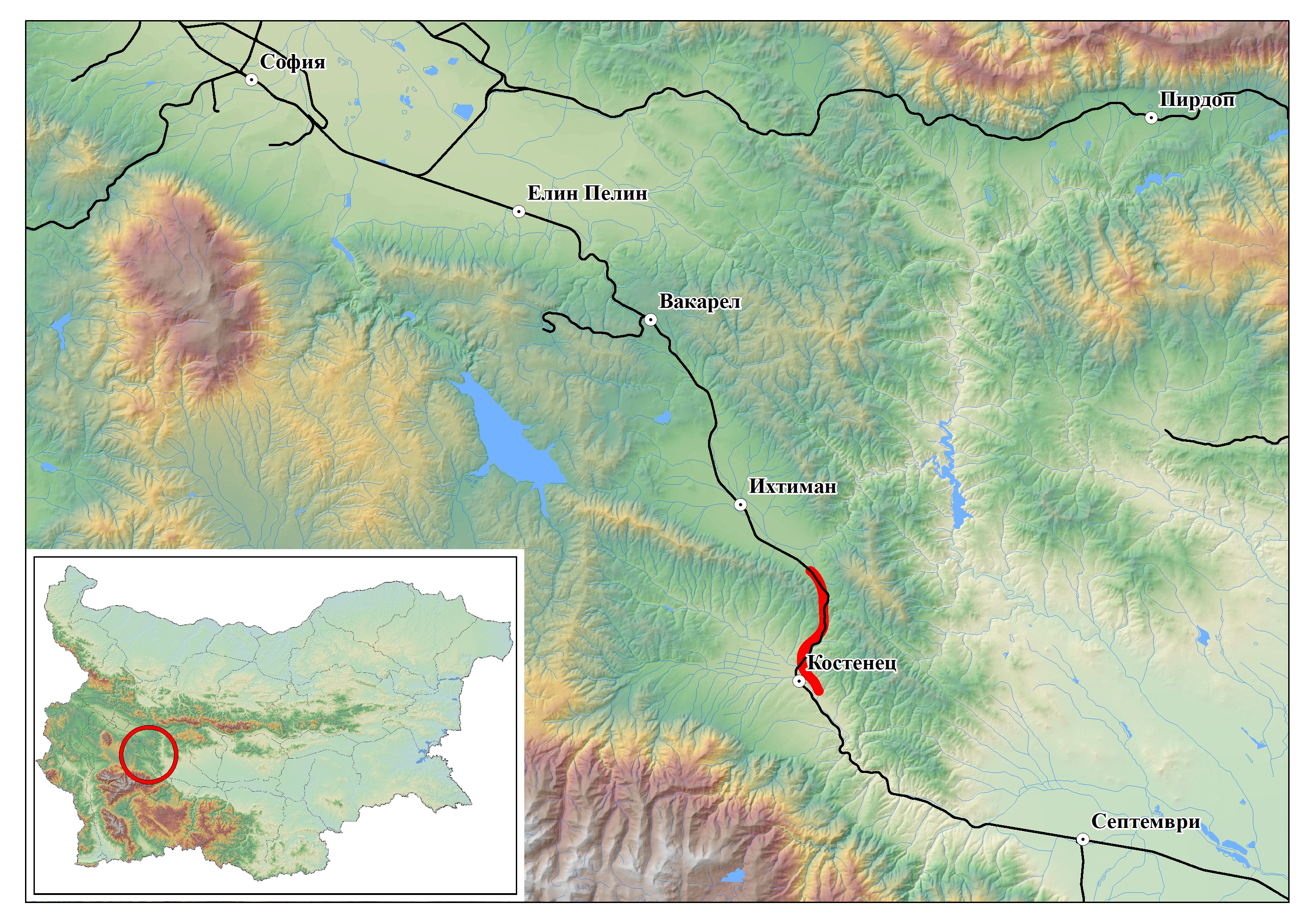 Изграждането на трасето е разделено на 3 участъка: Елин Пелин – междугарие след гара Вакарел, междугарие след гара Вакарел – междугарие след гара Ихтиман и междугарие след гара Ихтиман – нова гара Костенец.