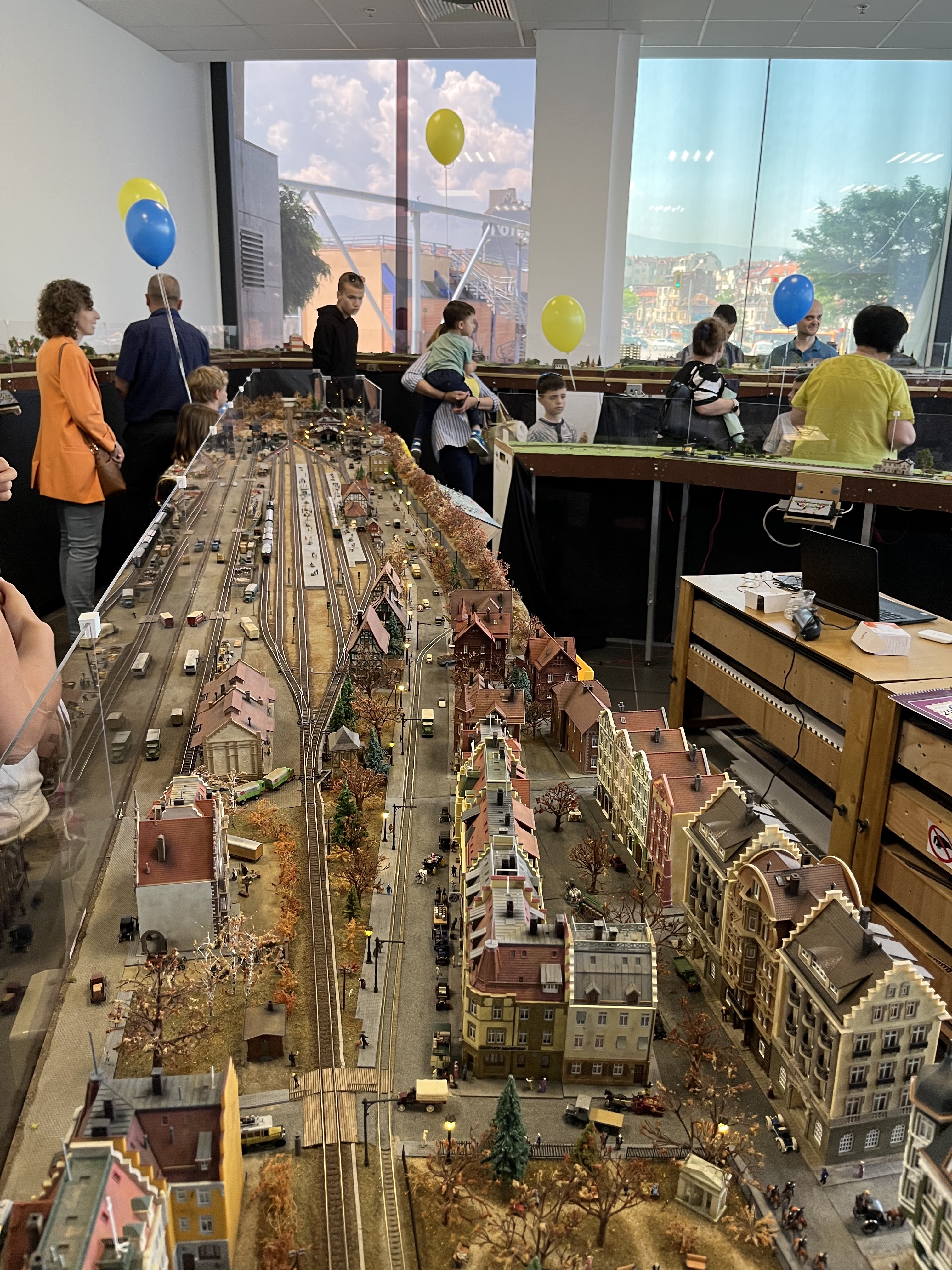 Детският празник продължи на Централна гара София, където децата посетиха Клуба на жп моделистите, където имаха възможност да управляват някои от моделите, изложени там.